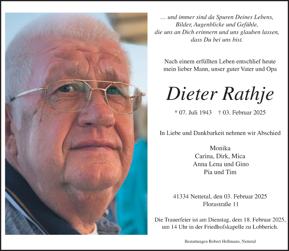 Hier finden Sie alle Traueranzeigen aus der Zeitung, die bisher für Dieter Rathje erschienen sind. Weitere Traueranzeigen, die in der Zeitung erscheinen, werden hier ebenfalls aufgelistet