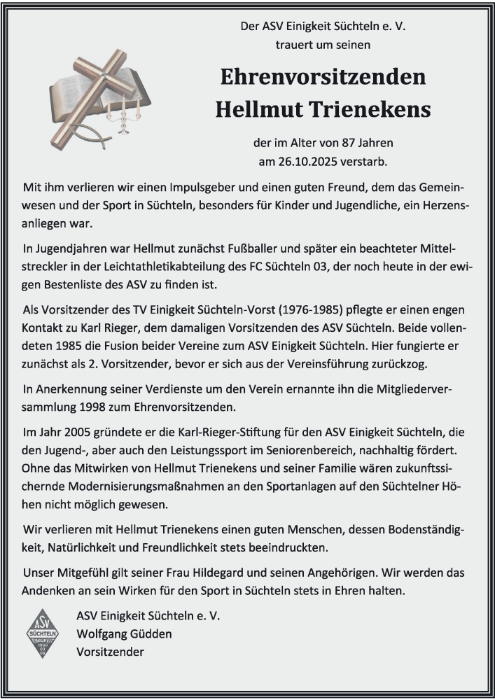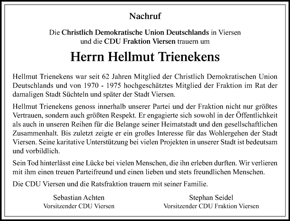 Hier finden Sie alle Traueranzeigen aus der Zeitung, die bisher für Hellmut Trienekens erschienen sind. Weitere Traueranzeigen, die in der Zeitung erscheinen, werden hier ebenfalls aufgelistet
