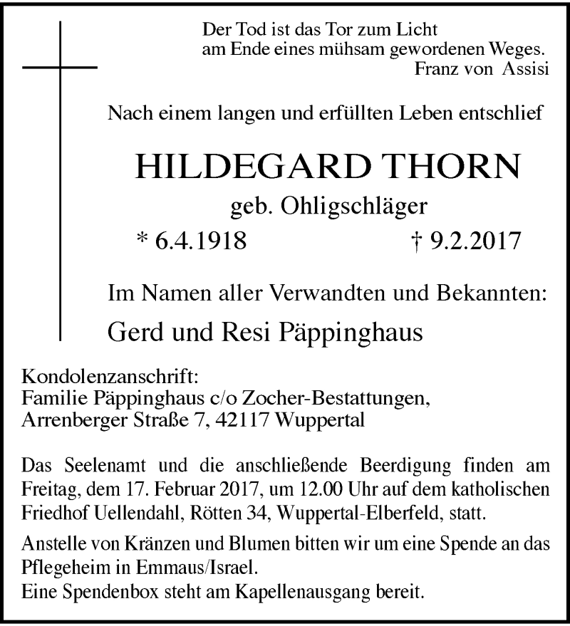 Hier finden Sie alle Traueranzeigen aus der Zeitung, die bisher für Hildegard Thorn erschienen sind. Weitere Traueranzeigen, die in der Zeitung erscheinen, werden hier ebenfalls aufgelistet