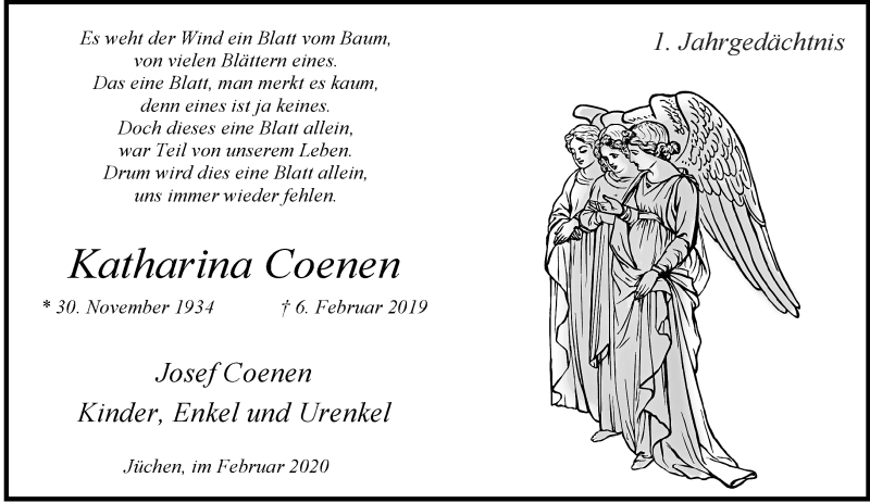Hier finden Sie alle Traueranzeigen aus der Zeitung, die bisher für Katharina Coenen erschienen sind. Weitere Traueranzeigen, die in der Zeitung erscheinen, werden hier ebenfalls aufgelistet