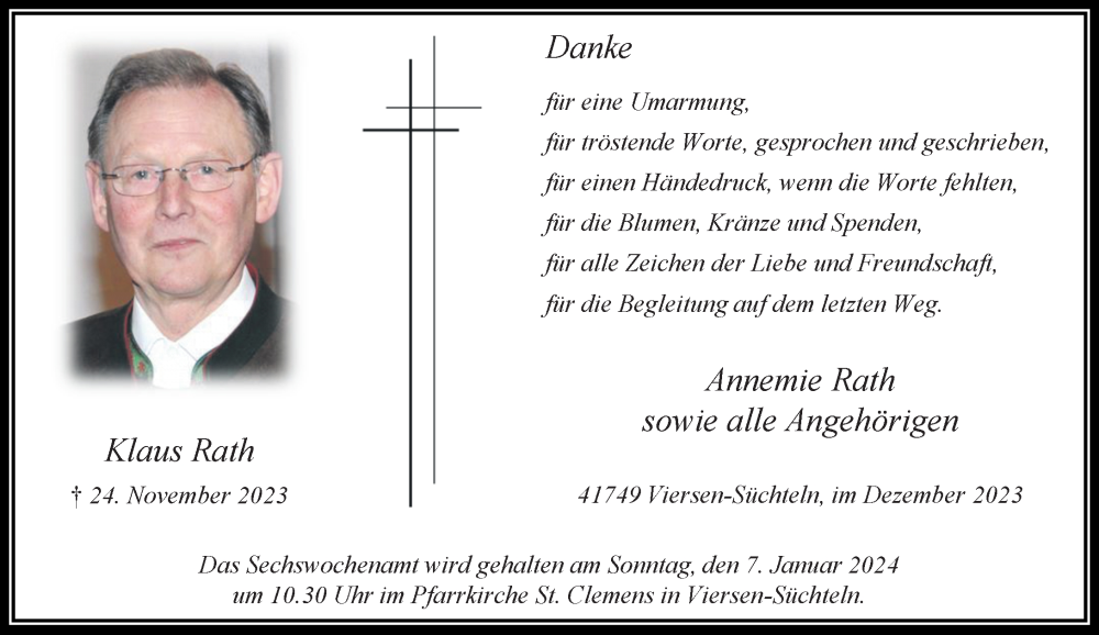 Hier finden Sie alle Traueranzeigen aus der Zeitung, die bisher für Klaus Rath erschienen sind. Weitere Traueranzeigen, die in der Zeitung erscheinen, werden hier ebenfalls aufgelistet