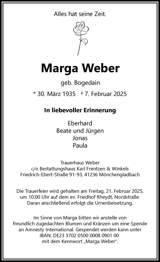 Hier finden Sie alle Traueranzeigen aus der Zeitung, die bisher für Marga Weber erschienen sind. Weitere Traueranzeigen, die in der Zeitung erscheinen, werden hier ebenfalls aufgelistet