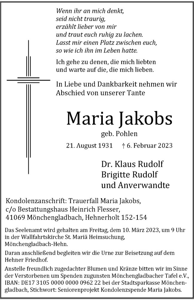 Hier finden Sie alle Traueranzeigen aus der Zeitung, die bisher für Maria Jakobs erschienen sind. Weitere Traueranzeigen, die in der Zeitung erscheinen, werden hier ebenfalls aufgelistet