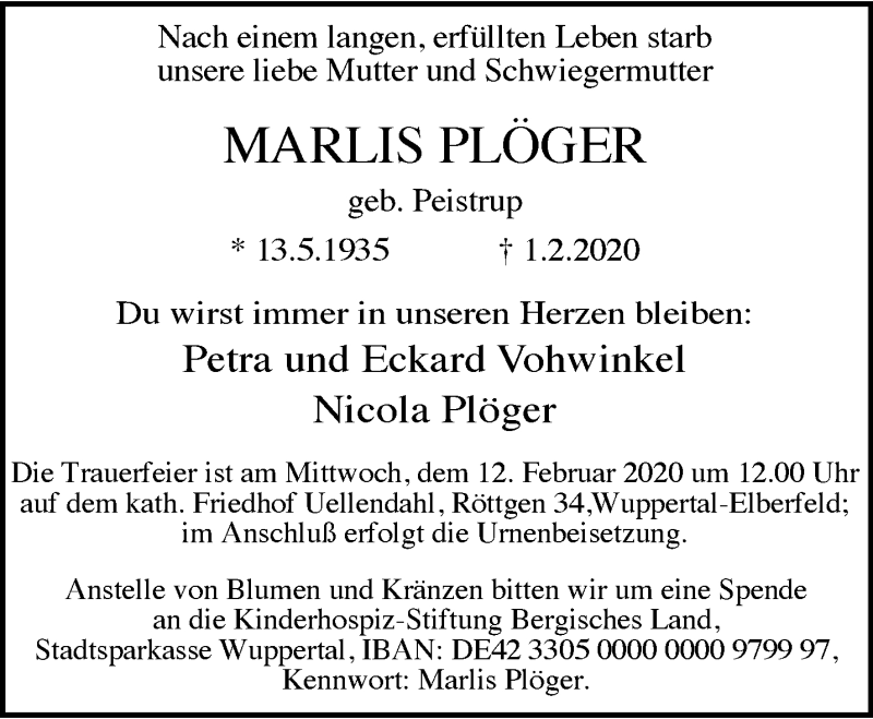Hier finden Sie alle Traueranzeigen aus der Zeitung, die bisher für Marlis Plöger erschienen sind. Weitere Traueranzeigen, die in der Zeitung erscheinen, werden hier ebenfalls aufgelistet