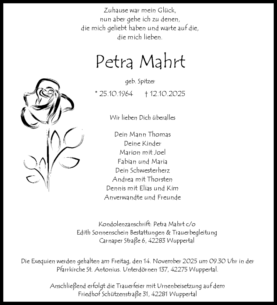 Hier finden Sie alle Traueranzeigen aus der Zeitung, die bisher für Petra Mahrt erschienen sind. Weitere Traueranzeigen, die in der Zeitung erscheinen, werden hier ebenfalls aufgelistet