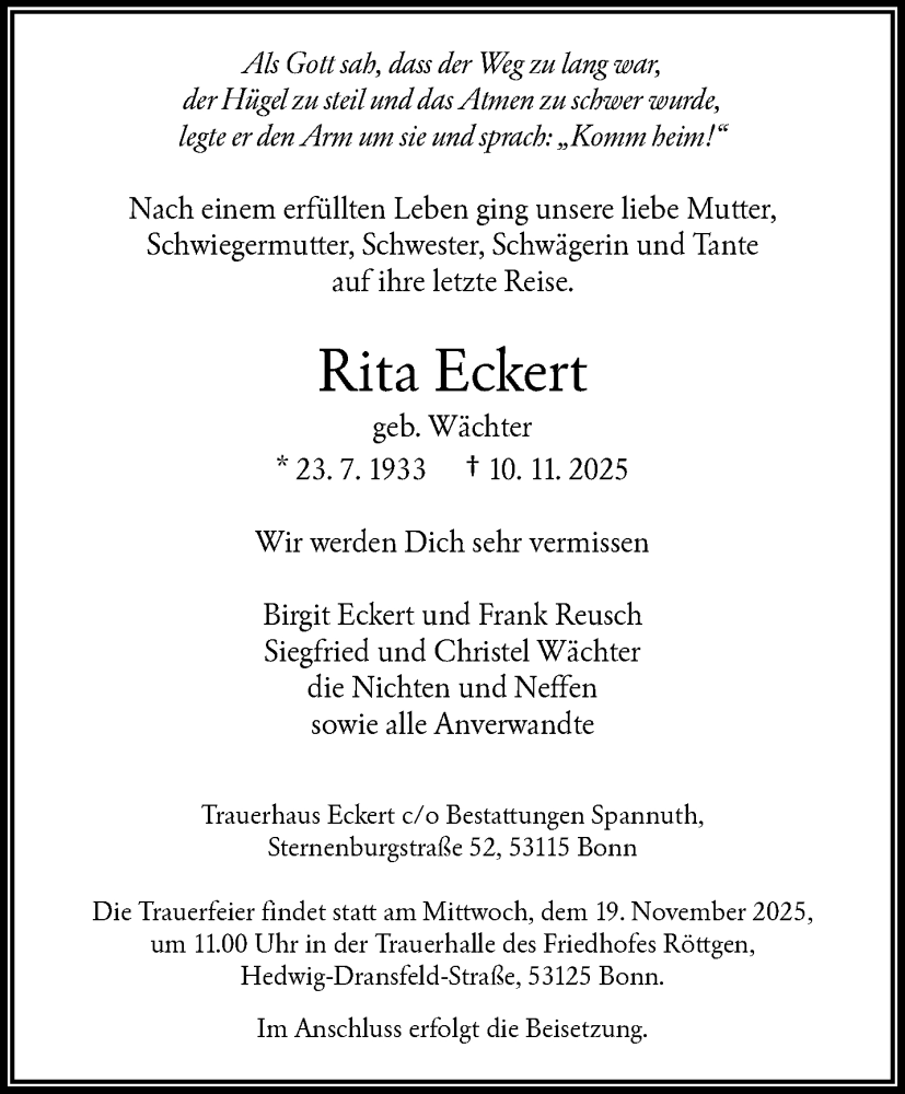 Hier finden Sie alle Traueranzeigen aus der Zeitung, die bisher für Rita Eckert erschienen sind. Weitere Traueranzeigen, die in der Zeitung erscheinen, werden hier ebenfalls aufgelistet