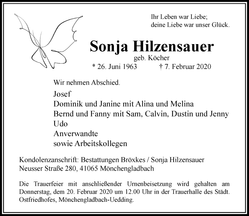 Hier finden Sie alle Traueranzeigen aus der Zeitung, die bisher für Sonja Hilzensauer erschienen sind. Weitere Traueranzeigen, die in der Zeitung erscheinen, werden hier ebenfalls aufgelistet