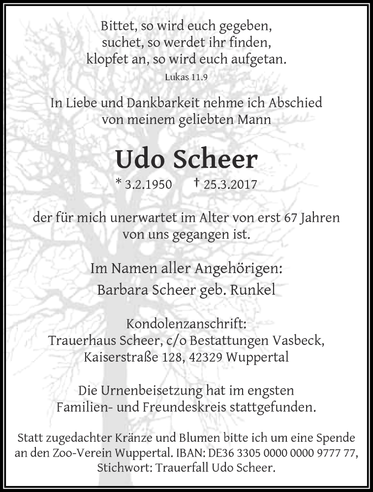 Hier finden Sie alle Traueranzeigen aus der Zeitung, die bisher für Udo Scheer erschienen sind. Weitere Traueranzeigen, die in der Zeitung erscheinen, werden hier ebenfalls aufgelistet